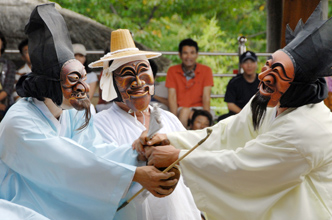 韓国慶尚北道安東市にある河回村は、韓国仮面劇の「ふるさと」と言われ、2010年、ユネスコ文化遺産に登録された。仮面劇は朝鮮朝時代に、支配階級の両班を風刺する庶民の芸能として発展した。