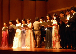 日本の高校生は昭和音楽大学主催の〞高校生のための歌曲コンクール〟優勝者5人、韓国の高校生はソウル市内の芸術高校在校生5人だった。