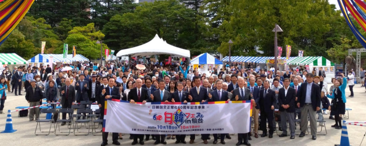 【宮城】韓日国交正常化60周年を記念した「2025日韓親善フェスティバルin仙台」(民団宮城本部主催、宮城県日韓親善協会共催、在外同胞庁後援)が10月18、19日の2日間、仙台市の勾当台公園で開催された。両日とも秋らしい陽気に誘われて会場には約4万人の来場者が訪れた。