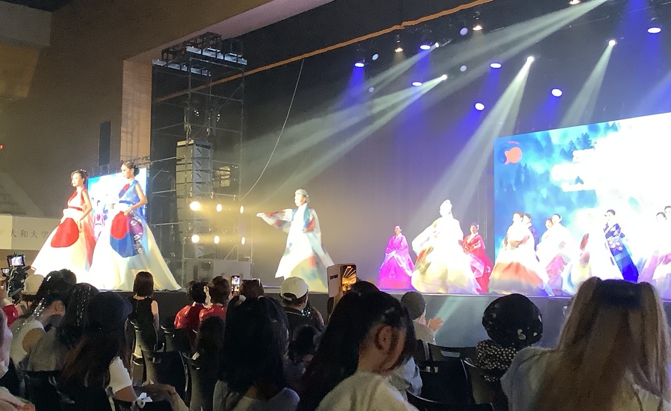 大和アリーナステージでは、第1部としてダンスコンテストが行われ、地域のダンス教室などに通っている15組が出演し、キレのあるダンスを披露した。第2部は白頭学院建国中・高等学校の伝統芸術部の「夢舞~ムーブ」でスタート、圧巻の迫力で観客を魅了。次に婦人会大阪本部のオモニコーラスが「ある素敵な日に」など2曲を合唱したほか、社団法人世界文化芸術振興会が「宮中韓服ファッションショー」を披露し、色鮮やかな韓服でステージに花をそえた。KBS韓国歌謡コンクールで銀賞を受賞したMAIさんのステージに続き、新井深絵さんのゴスペルコンサートが行われた。