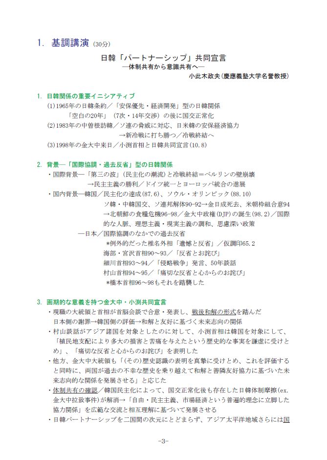 「日韓パートナーシップ宣言20 周年記念セミナー」の結果