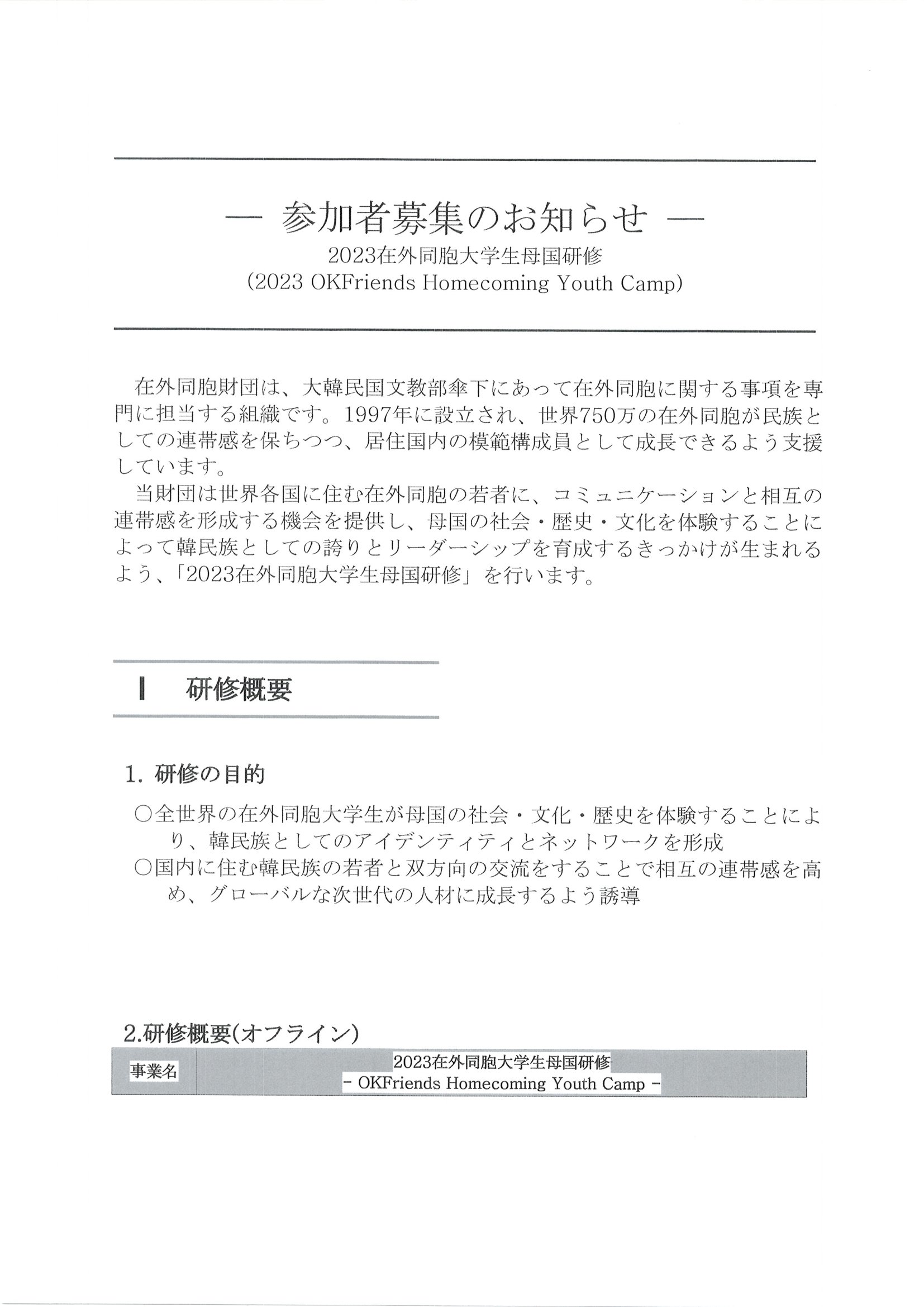 【募集】在外同胞財団主催 大学生母国研修