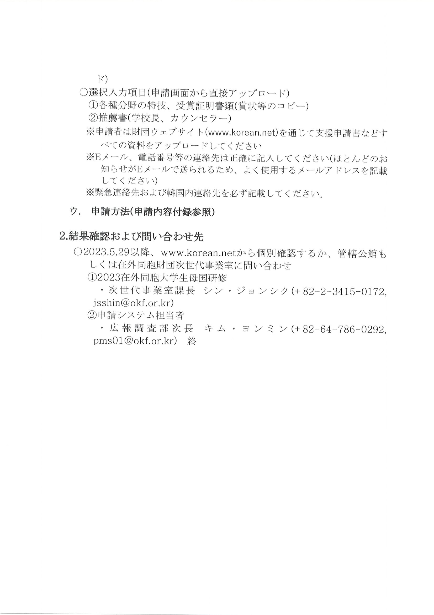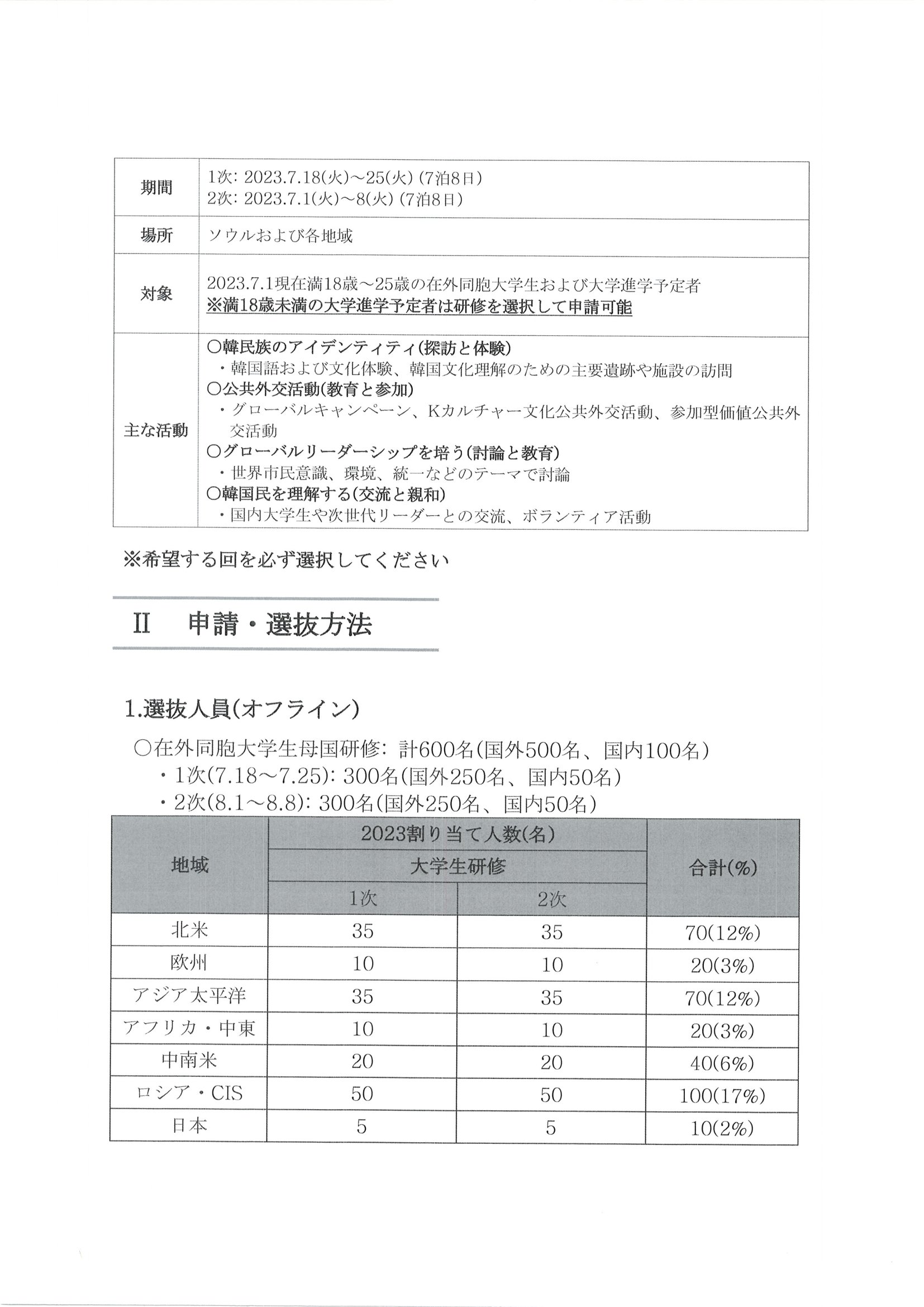 2023年 在外同胞 韓国内教育課程 募集 案内