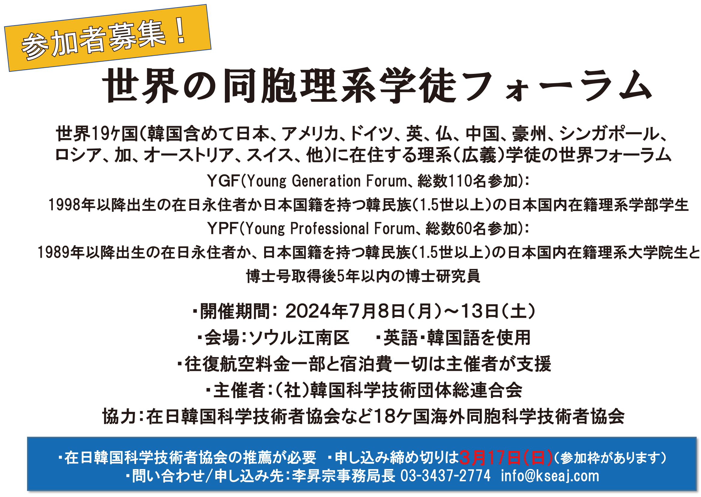 【案内】在日韓国 科学技術者協会 設立40周年 記念講演