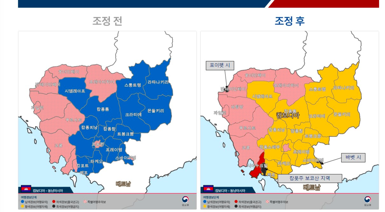 韓国外交部はカンボジア一部地域に対して16日午前0時をもって最も高いレベルの「旅行禁止」を発令した。