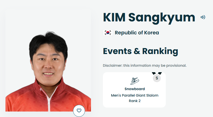 ミラノ・コルティナ冬季五輪第3日の8日(現地時間)、スノーボード男子パラレル大回転が行われ、韓国の金相謙(キム・サンギョム)が銀メダルに輝いた。今大会の韓国勢初メダル。また、韓国が夏季・冬季五輪で獲得した通算400個目のメダルとなった。