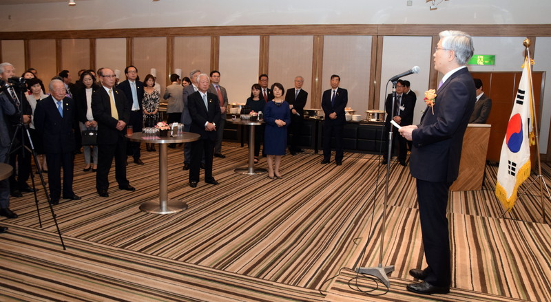 一方で、在日同胞の多様化をはじめ、法的地位向上、ヘイトスピーチ根絶など、在日同胞社会が抱える課題についても「大使として、皆さんとともに悩み、同胞社会が発展していけるよう積極的に支援していく」と同胞との積極的な対話に意欲を見せた。 この後、李壽源民団東京本部団長の乾杯音頭で祝宴が始まった。