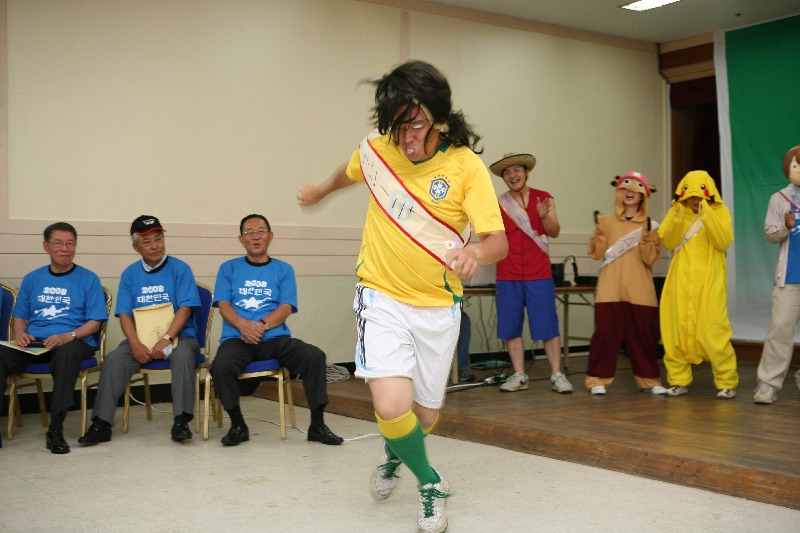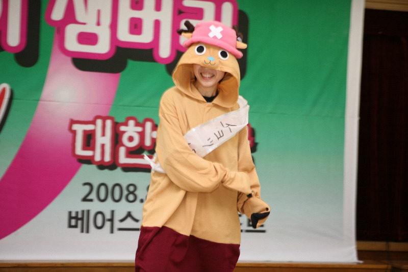 もうひとりのMC「チェ・ホンマン」のにせもの「チェ・ホソマン」も登場し、ムードが盛り上がってきた(8/3 抱川ベアースタウン) |