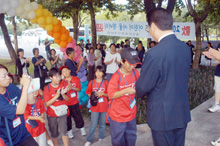 ■□ 「子どもがハングルで名前を書けるようになっていた。韓国語の勉強も、帰ってきてからはモチベーションが違う。家族みなが本当に喜んでいる」(尹啓子・東京・36) 「親が教えられないことを、本人が韓国で直接感じてくれた。保護者企画は知らないことが多く学べて、勉強になった」(金桃子・大阪・49) (2004.8.18 民団新聞) |