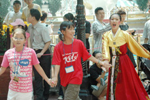 8月8日から12日まで韓国で開催されたオリニ・ソウルジャンボリー。日本全国からオリニたちが約300人、リーダー、保護者、運営スタッフらを合わせると総勢約500人の在日同胞が参加した。全日程が炎天下で進められたが、オリニたちは暑さにも負けず、本国の地で笑顔を弾けさせた。 オリニ・ソウルジャンボリーでは、核となるイベントが三つ行われた。 一つ目は、ソウル市内を巡るスタンプラリー。オリニたちはあちこちに寄り道しながら観光を楽しんだ。街なかでは、本国のアジュンマから話しかけられドッキリする場面もあった。 スタンプラリーは、韓国の街なかでオリニたちに生の韓国を体験させることで、韓国への興味を芽生えさせる意義深いものとなった。 二つ目は小学校一日体験入学。学校側の全面的な協力により、本国児童と一緒に民俗ノリ、民芸品の製作、ハングル教室、歌の学習などを体験した。 言葉が通じないことでとまどうオリニたちが多かったが、身振り手振りで意思疎通を図り、言葉が通じないながらも友情が生まれていた。 小学校一日体験入学では、オリニたちが韓国文化を体験し、本国児童と触れ合いながら、言語の壁を超えて友情を育んだことによって、素直に本国に向き合うきっかけが作られた。 三つ目は、最終日に行われたキッズパーティーだ。民団中央本部の金宰淑団長があいさつに立ち、リーダーたちの苦労をねぎらい、オリニたちに「韓国での感動を大切にして日本に帰ってください。そしてときどき思い出して、自分が韓国人であるということを忘れないでいてください」と語りかけた。 オリニたちとリーダーらはテーマソングを一緒に大声で歌い、全身でダンスを踊り、一体となった。ダンスが終わり別れのムードが漂い始めると、会場はオリニ・ソウルジャンボリーの終了と、友達やリーダーとの別れを惜しむオリニたちの嗚咽に包まれた。 キッズパーティーでは、日本で生活するオリニたちにとって、かけがえのない存在となる同世代の同胞との友情、人生の先輩となるリーダーらとの信頼関係を確め合うことができ、価値のある企画となった。 終了時にはオリニやリーダー、運営スタッフらは疲れを見せていたが、みな一様に笑顔で満足気な様子だった。オリニ・ソウルジャンボリーは大成功と言える成果を残し、その幕を下ろした。