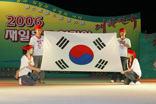 太極旗が登場し国民儀礼開始 (8/6 ウェルカムパーティ) |