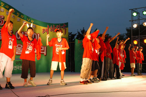 大声を出したオリニが勝ち。 「オリニジャンボリー、ファイティング」 (8/9 キッズ大パーティ) |