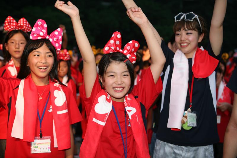 キャンプファイヤーの最後にはステージの大画面に4日間のダイジェスト映像が映し出され、オリニを代表して康美里さん(小6・東京)が感想文を朗読。 「2回目の参加ですが、この2年間とても楽しみにしていました。最高の仲間たちと自分らしさを見つけることができました。今年が最後だと思うととても悲しい。でも、いつかリーダーになって戻ってきます。だからずっとジャンボリーを続けてください」と熱く語った。