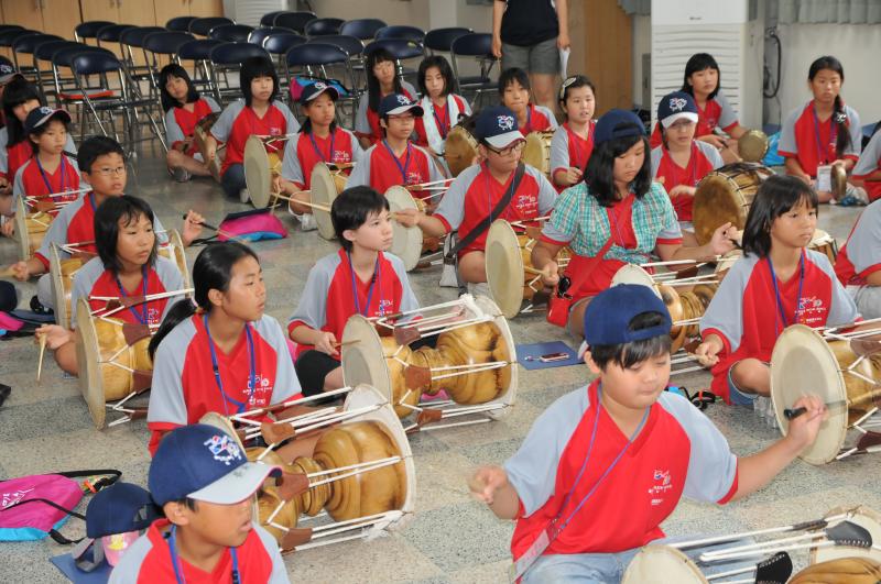 サムルノリも登場した(8/3 長丞初等学校) |