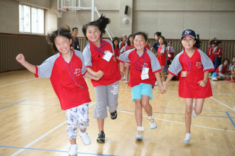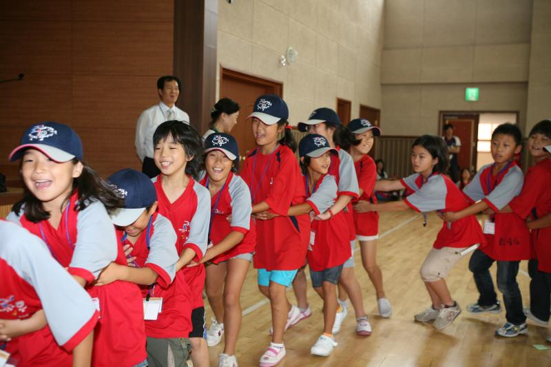 みんなと一緒にミニ運動会も楽しみました(8/3 榛接初等学校) |