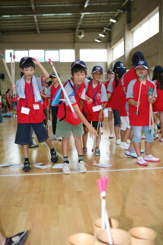 ええいっどうだ!民俗遊戯のトゥホ(矢投げ)に挑戦(8/3 榛接初等学校) |