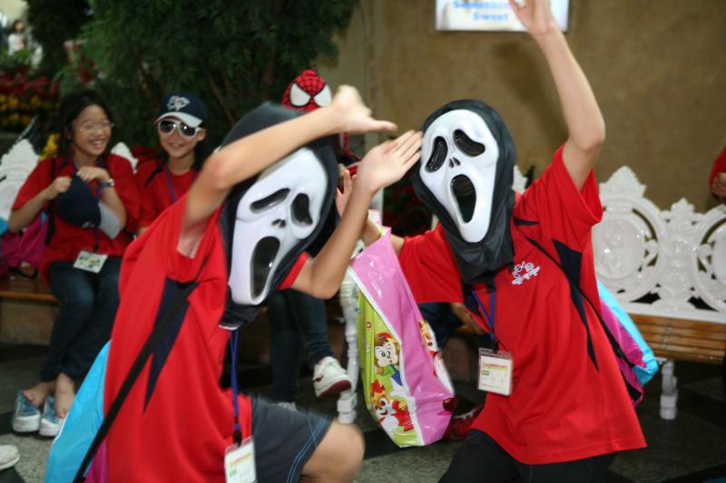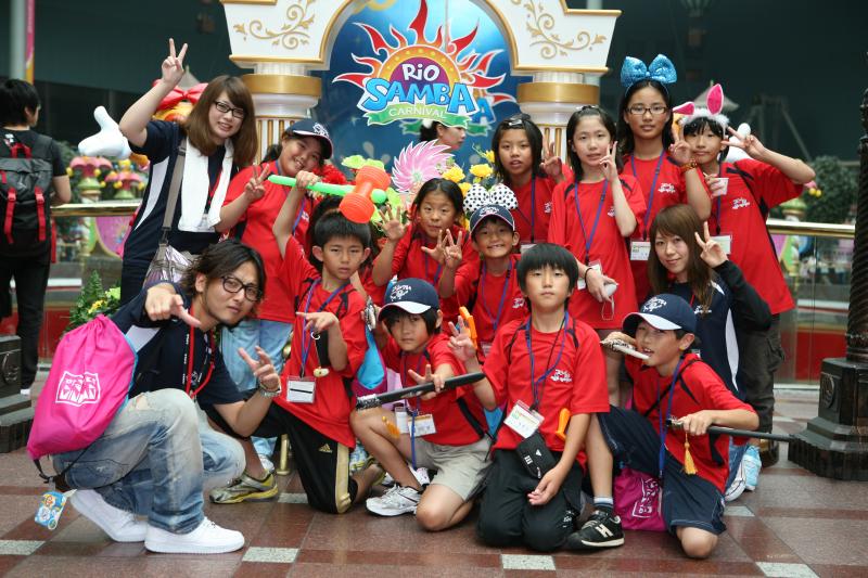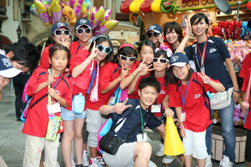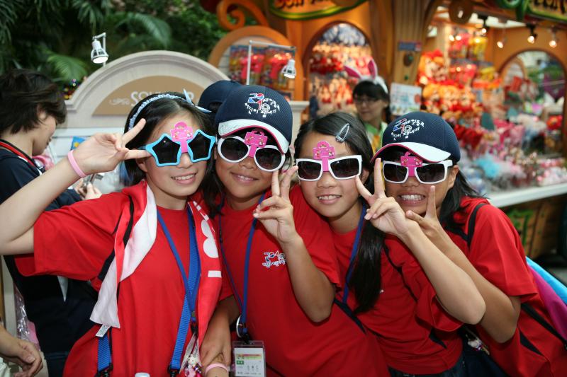 「さあ、みんなおそろいのサングラスでポーズだ」(8/4 ロッテワールド) |