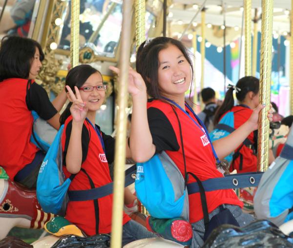 | オリニたちが最も楽しみにしていたロッテワールド。みんなでおそろいのカチューシャよ |