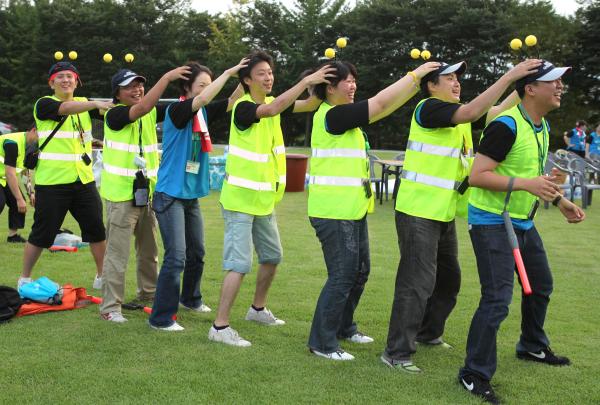 | オリニとリーダー、スタッフ313人がひとつの輪になった |