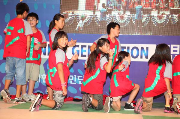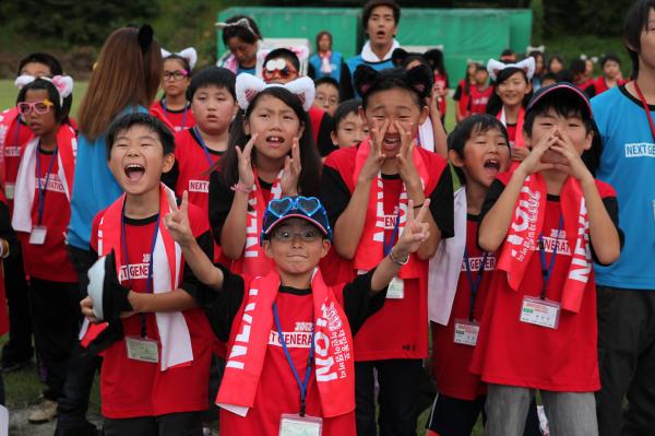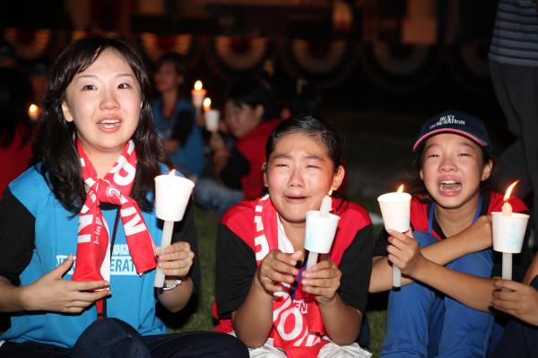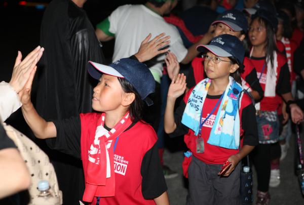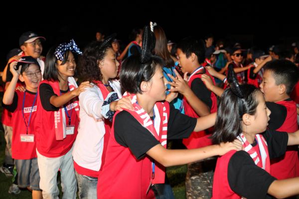 | 4人のオリニ代表がキャラクターと一緒に点火しキャンプファイヤーがスタート |