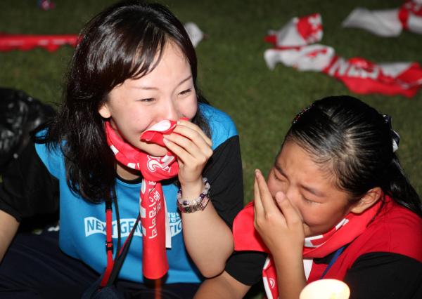 | パーティを終え、会場を出て行くオリニの目からは涙が止まらない |