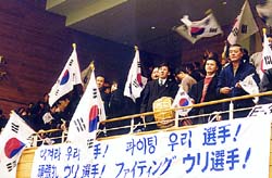 | 韓国選手熱い声援を 送った民団の応援団 |