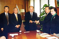 民団中央本部は14日、厚生省を訪れ、丹羽雄哉厚生大臣宛に要望書を提出した。4月から施行される介護保険制度で無年金状態が大多数を占める在日同胞高齢者には、保険金の格差など新たな問題が生じることから、経過措置を適用した「国民年金法」の抜本的改正などを求めた。