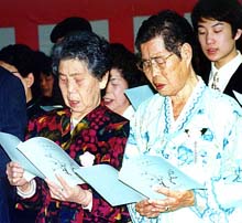卒業式で校歌を合唱するハルモニ (墨田区立文花中で) |