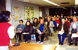 【大阪】大阪市から配置された在日韓国・朝鮮人高齢者専門相談員・鄭貴美さんが、15日の大阪・生野東支部(生野区、趙文豪支団長)を皮切りに民団支部巡回をスタートさせた。在日同胞の高齢者が介護保険制度導入で不利益を被らないよう、きちんとした情報を伝えるのが目的。行政の広報では十分な情報が伝わっていなかったようで、同胞高齢者は「よく聞いておかなければ」と真剣に耳を傾けていた。