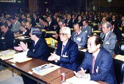 | 満場一致の拍手で新年度活動方針案を 採択する中央委員 |