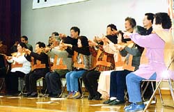 | 笑顔たっぷりに、手話を交えながら 歌を披露するハルモニたち |
