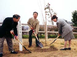 当日は安支団長と坂野会長らが苗木六本をしっかりと植え、緑化事業への協力と花見会場の整備という一石二鳥の植樹となった。東海市日韓協の20周年を記念して合同で植樹されたもの。