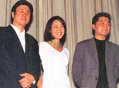 | 100万人突破を記念し、舞台あいさつに立つ 姜監督(右)と金允珍(中) 崔岷植(6日、新宿東急で) |