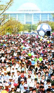 「韓国と日本が共催する2002年W杯の成功は一歩一歩の行進から」と、2002年W杯の成功を祈念する「韓日友情ウォーキング大会」が4月16日、W杯開幕地のソウルでスタートした。