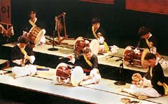 舞台では九台のチャンゴによる一糸乱れぬ連打の迫力ある演奏に、新生「サムルノリ」の底力を見せつけた。