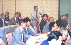| 支部が抱える悩みなどについて 中央役員と意見交換する支団長たち |