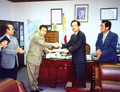 史富盛駐横浜総領事から 委嘱状を贈られる 李富鉄税理士(中央左側) |
