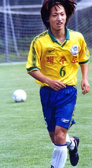 在日同胞初のKリーガー(韓国プロサッカー選手)で、一カ月後に迫ったシドニー五輪の韓国代表候補にも選ばれた朴康造選手(20・城南一和=MF)。165pという小柄な体格に負けないテクニックと闘志あふれるプレーが母国の地で開花した。今や、"小さな巨人"としてチームの顔になった朴選手に抱負と在日へのメッセージを聞いた。(写真と本文、鄭真一)