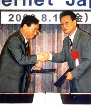 調印式の後、同ネットの金基琥社長が韓国語、日本語で対応できるインターネット機能などについて紹介し、金特任本部長が開局を宣言した。同ネットのアクセスは(http://www.hanternet.co.jp)。
