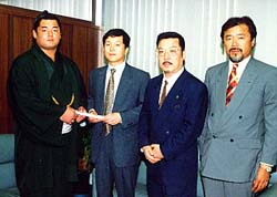 加入第1号はお相撲さん―。民団東京・墨田支部(韓斗現支団長)の有限会社・墨田保険センターがこのほど再建され、時津風部屋の時津海正博関が加入第1号となった。