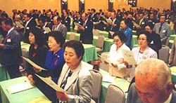 民主平和統一諮問会議(議長・金大中大統領)の第九期日本地域会議(日本地域協議会会長=金宰淑・民団中央本部団長)が4日、都内のホテルで開催され、「6・15南北共同宣言」を全面支持することを確認するとともに、朝鮮総連との対話と交流、共同事業を積極推進していくことを誓い合った。在日同胞の力を結集し、南北共同宣言の誠実な履行と実践のために、積極参与していくなど、統一推進への新たな決意を謳った決議文を採択した。