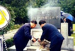 望郷祭に参列した「三重県在日韓国人無縁仏墓参団」一行31人は、望郷祭に引き続き、三重の民団・韓商・日韓親善協会の3団体で建立した合同碑の前で慰霊祭を執り行い、参列者一人ひとりが参拝した。