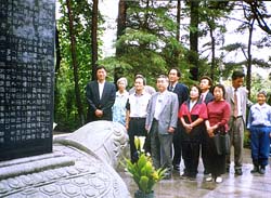 | 記念碑前で尹義士の功績を聞く 民団金沢支部の若手執行部 |