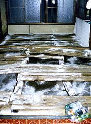 | 床板も抜け、居住が 不可能となった同胞宅 |