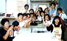 | 児童を対象にした 韓国料理講習会で 呉啓子さん(右奥) |