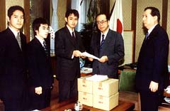 | 福田官房長官に署名簿を提出する 日本学生の会のメンバー |