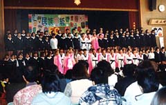 | 50周年式典で韓国と日本の 童謡を一緒に合唱する児童 |