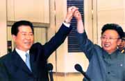 金大中大統領と金正日国防委員長による歴史的な南北首脳会談が6月13日から3日間、平壌で実現した。14日深夜には両首脳が(1)統一問題の自主的解決(2)連合制案と連邦制案との共通性認定(3)離散家族訪問団の交換(4)経済協力や社会、スポーツ、体育などでの協力交流(5)早期の当局者対話―の5項目からなる南北共同宣言に合意、署名した。