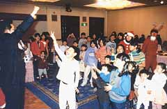 金会長の「20世紀最後のクリスマスをたっぷり楽しんでね」とのあいさつでスタート。サンタやトナカイなどに扮した青年会のオッパ、オンニらが企画が進められた。