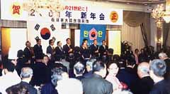 21世紀の幕開けを祝うと同時に1月31日から開会される日本の通常国会での永住外国人地方選挙権付与法案の成立へ向けて民団中央本部の新年会が11日、東京のホテルニューオータニで開かれた。東京・首都圏の民団はじめ傘下団体の幹部、全国の民団幹部、民族金融機関、民族学校関係者ら1000余人が詰めかけた。